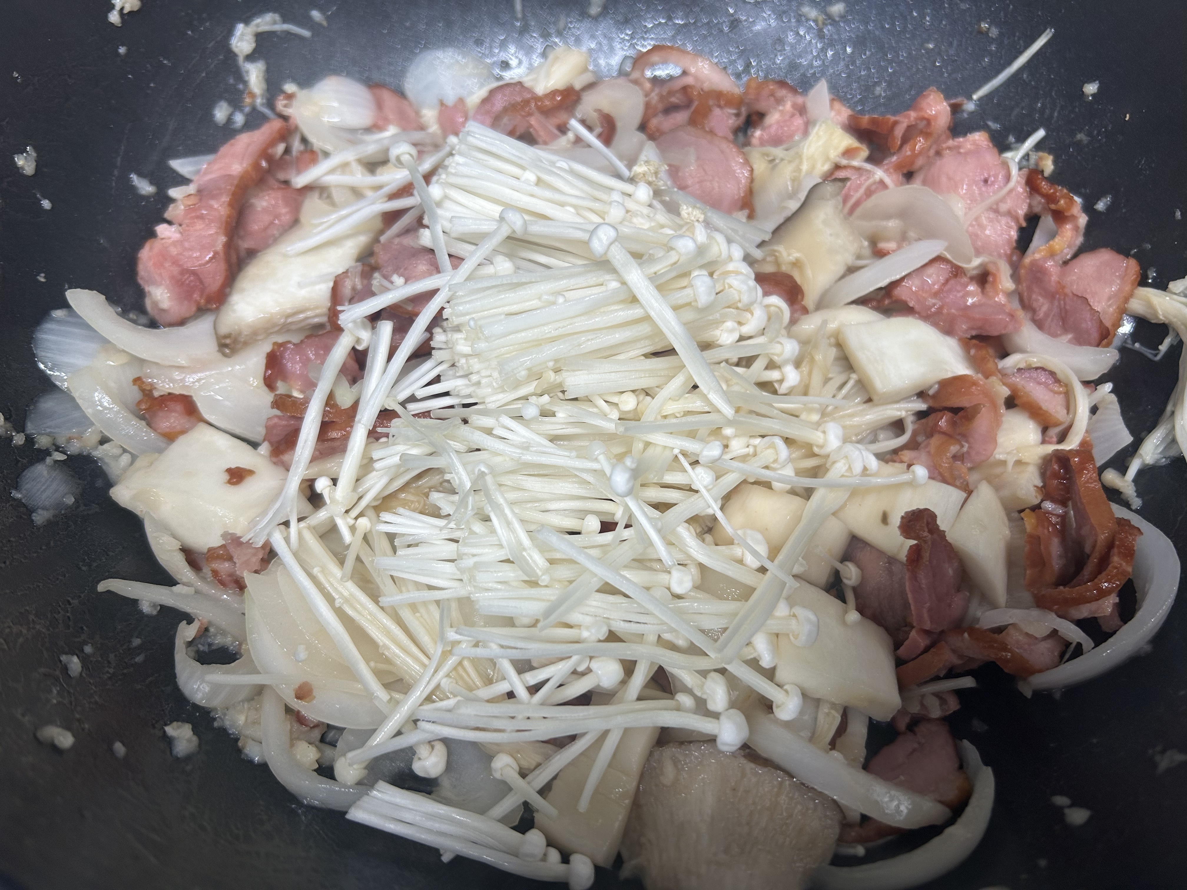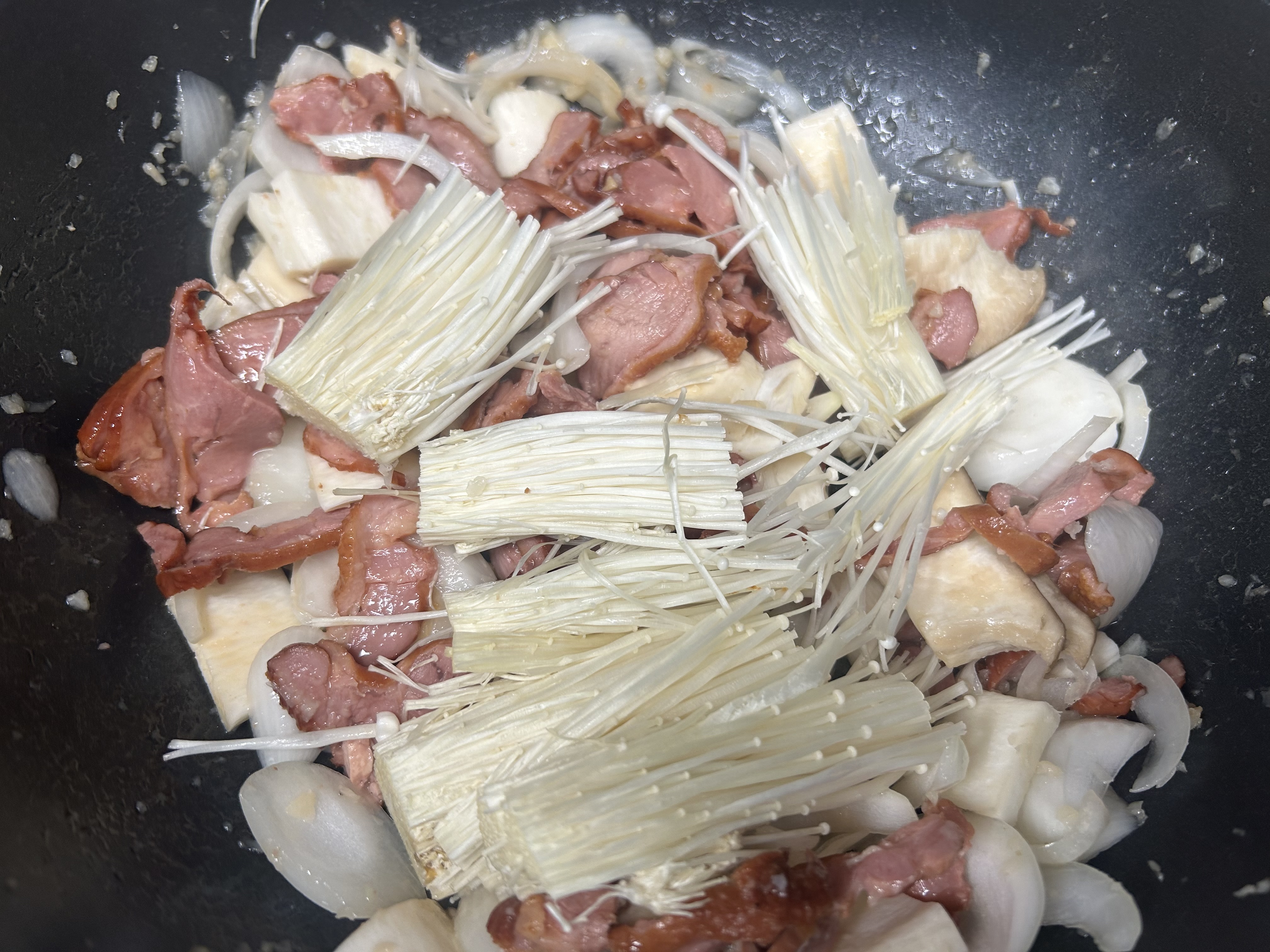 - 양송이버섯과 팽이버섯을 순서대로 넣고 중불에서 천천히 볶아줍니다.