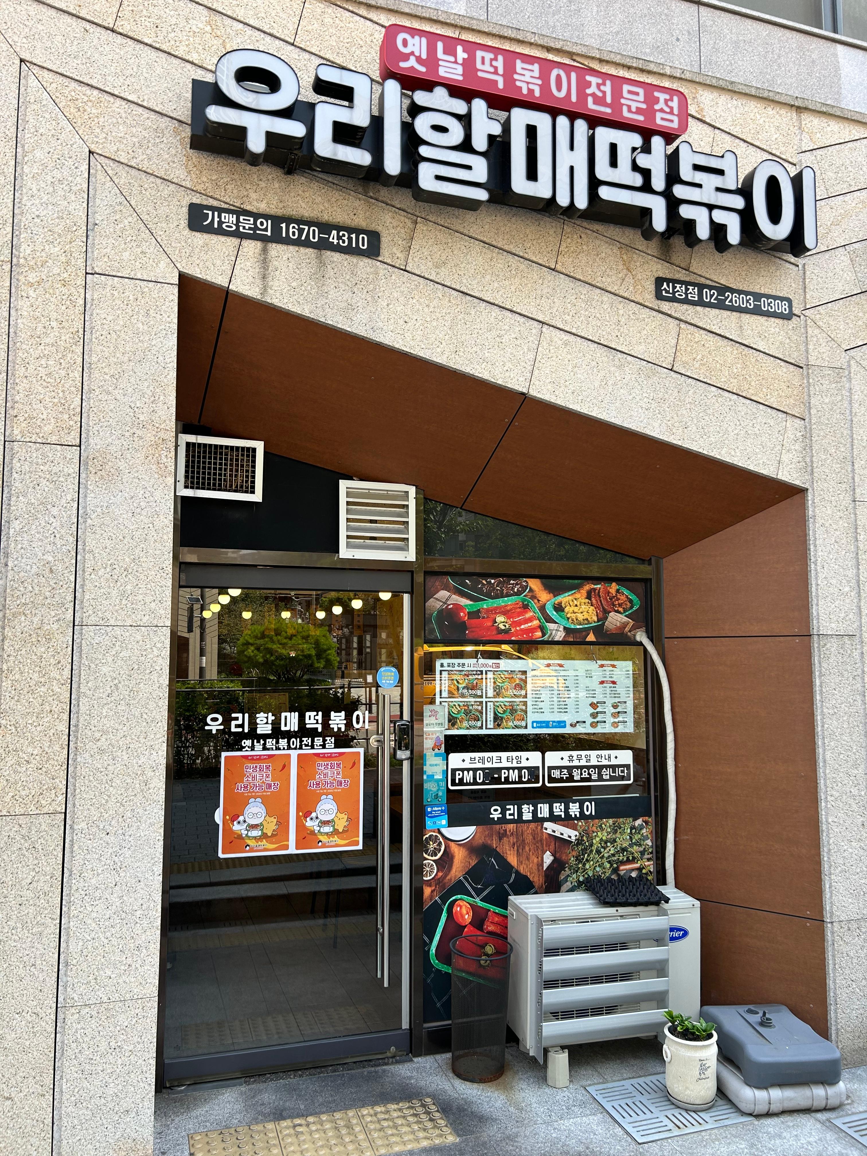 주소: 서울시 양천구 중앙로 43길 14, 래미안목동아델리체 상가 B동, 우리할매떡볶이 신정점