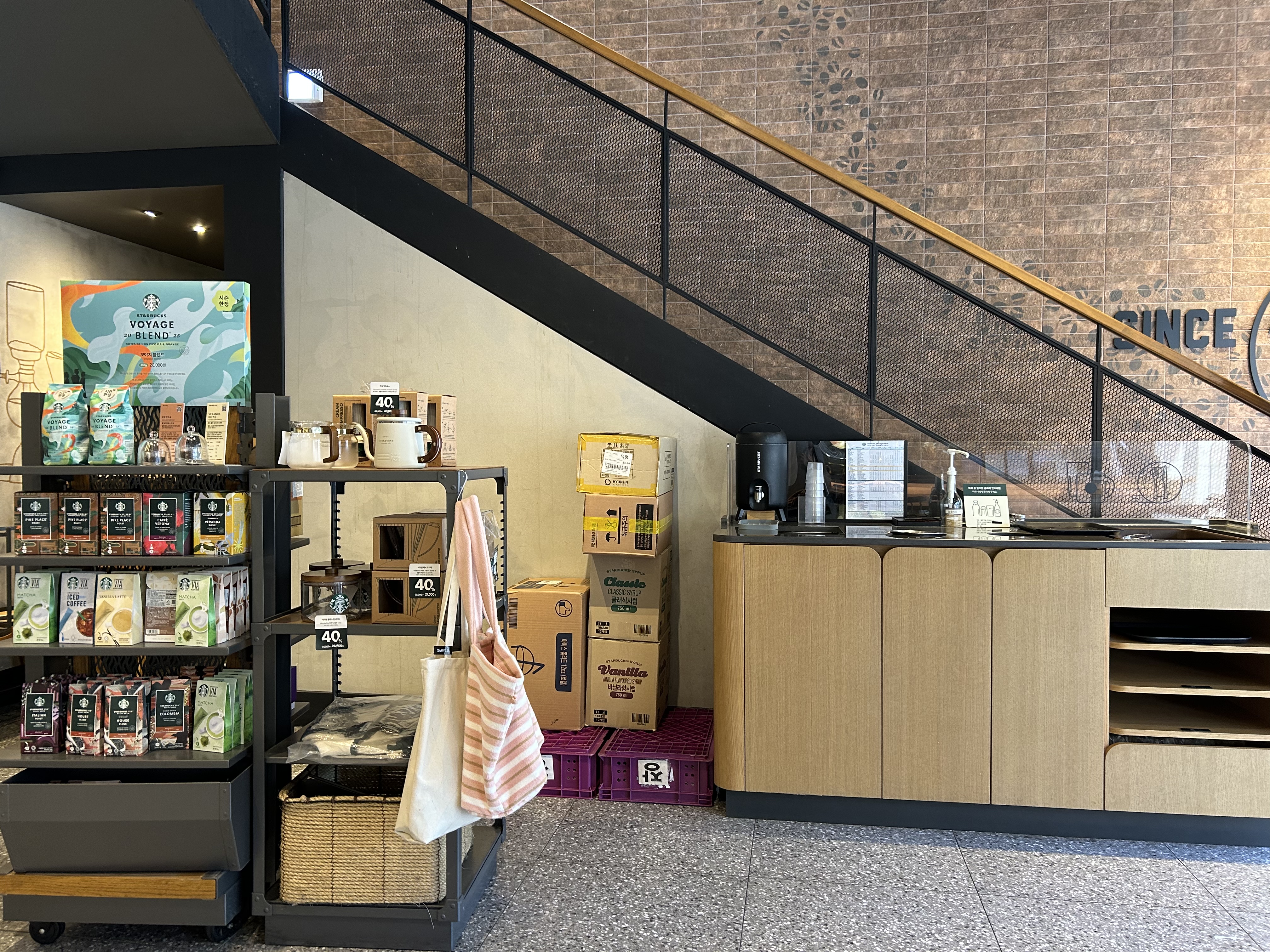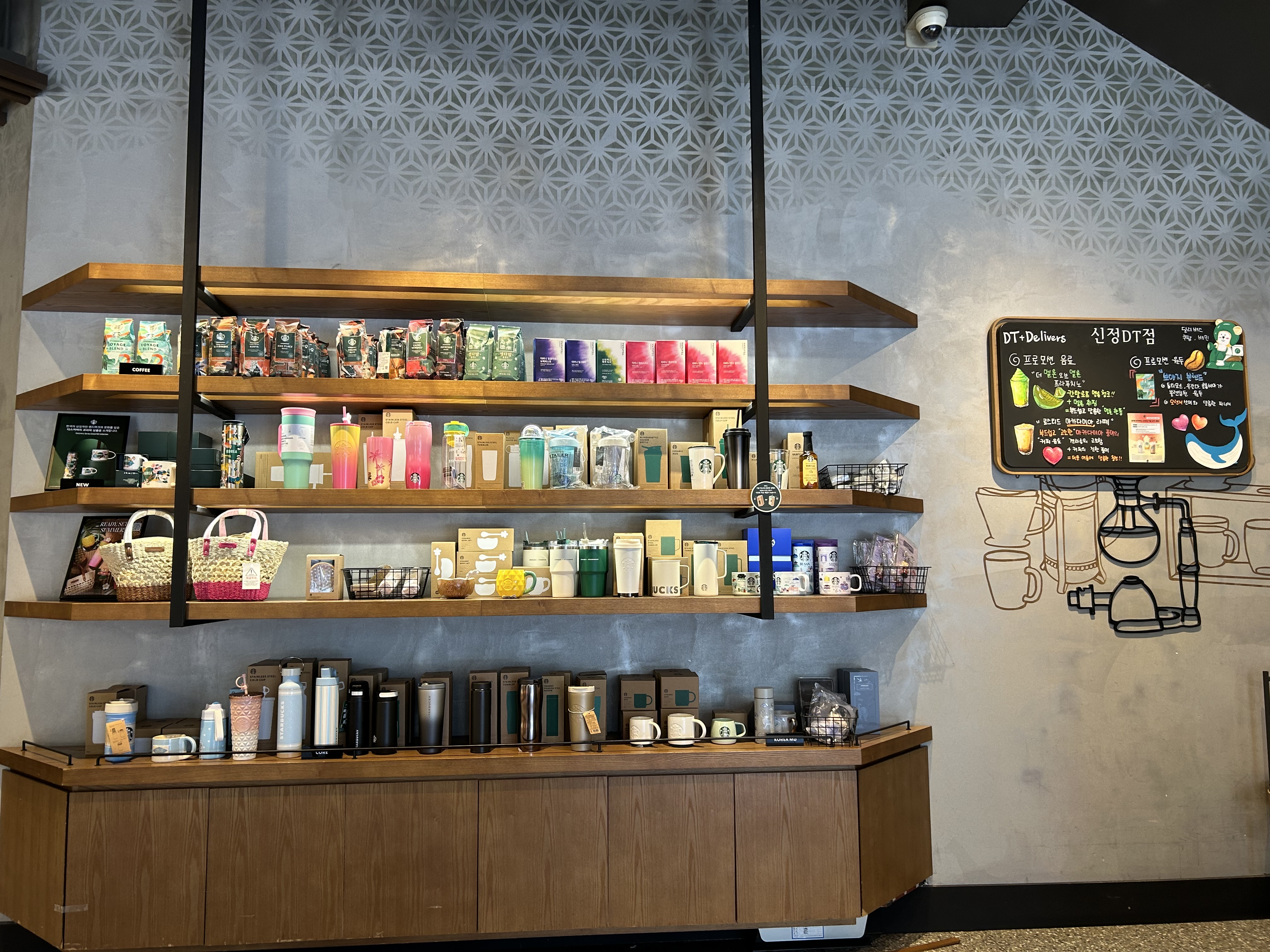 굿즈 코너에는 라탄 가방, 텀블러, 머그컵 등 계절 상품이 진열돼 있어 구경하는 재미가 있었습니다.
