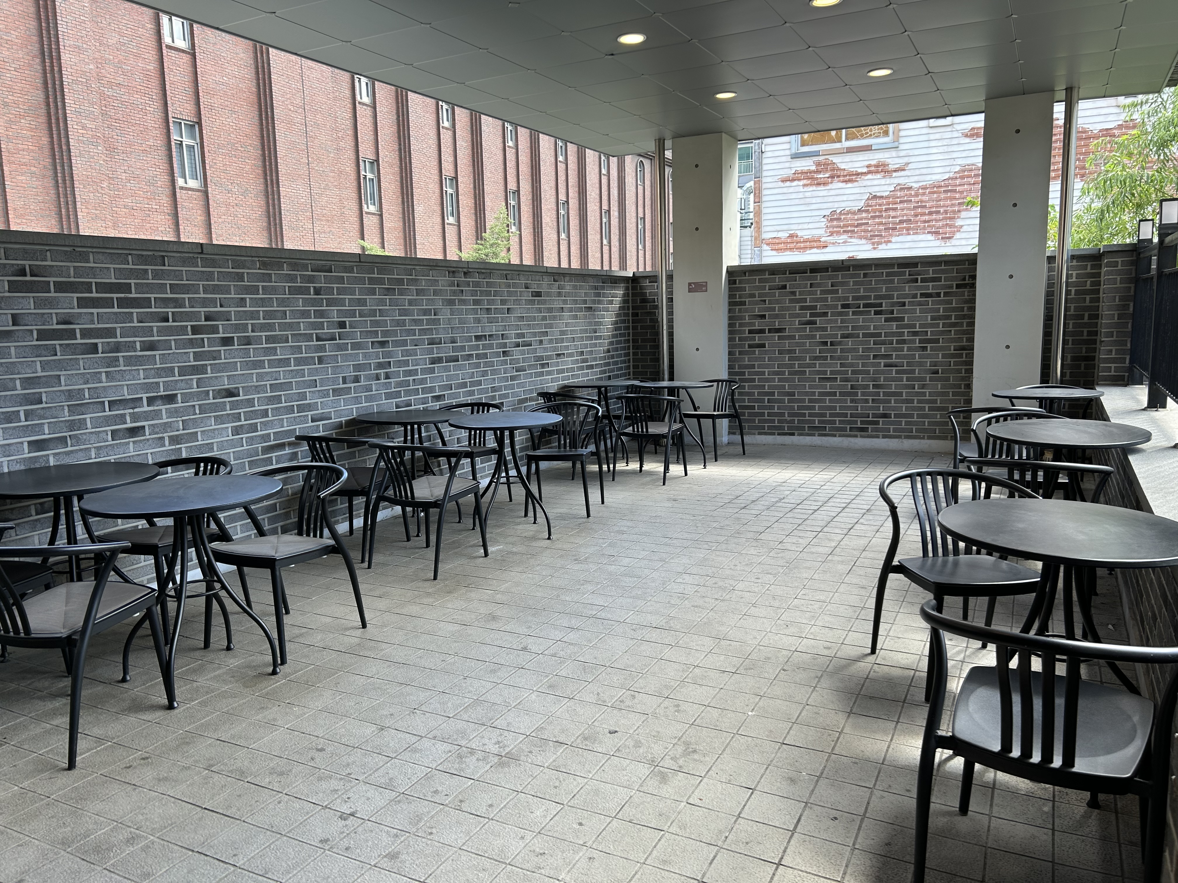 잠깐 앉아 대기할 수 있는 소형 테이블 몇 개와 대형 테이블이 마련돼 있었습니다.