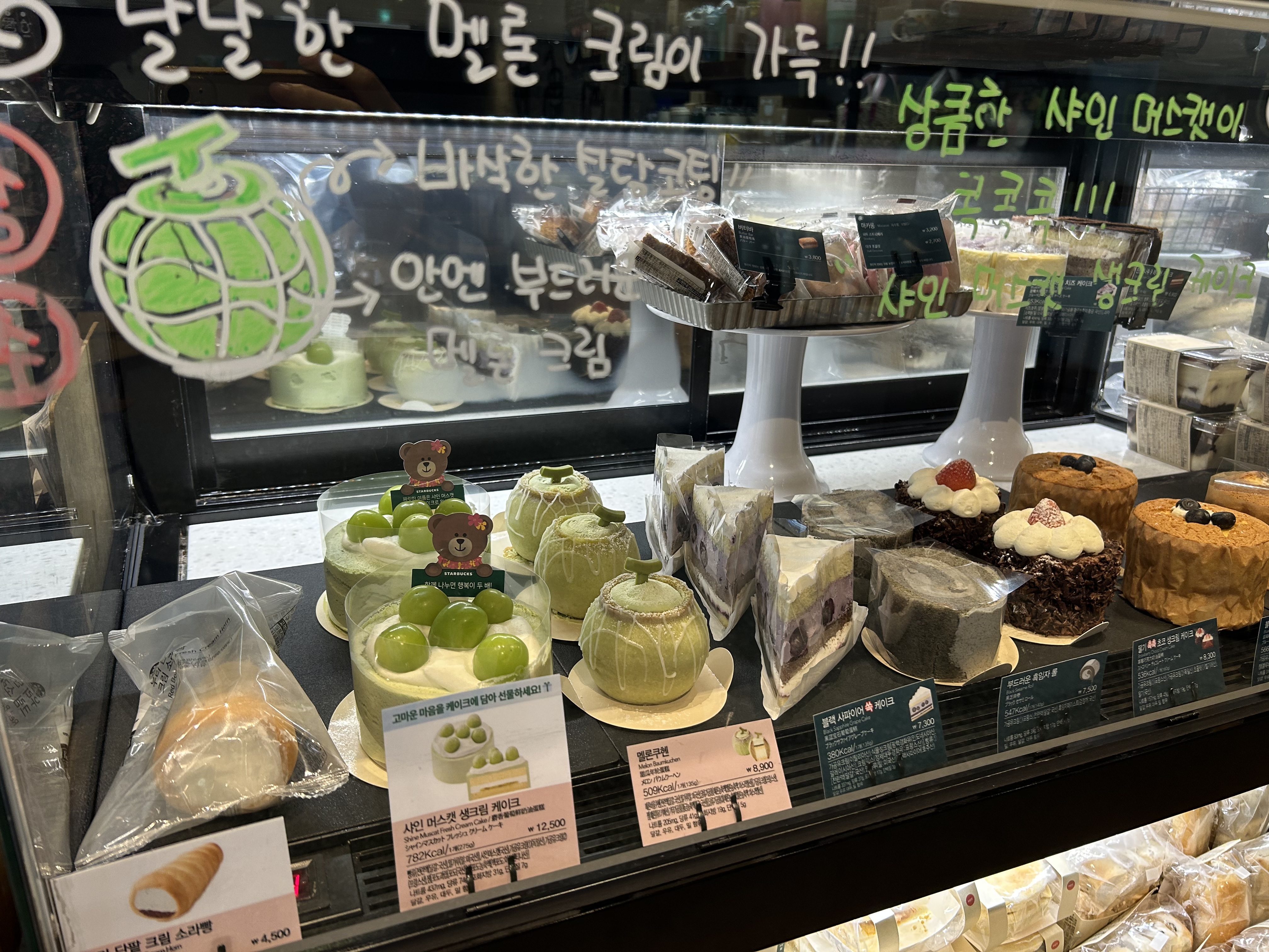특히 샤인 머스캣 생크림 케이크가 인상적이었는데, 작은 사이즈라 기념일이나 선물용으로 좋을 듯했습니다.